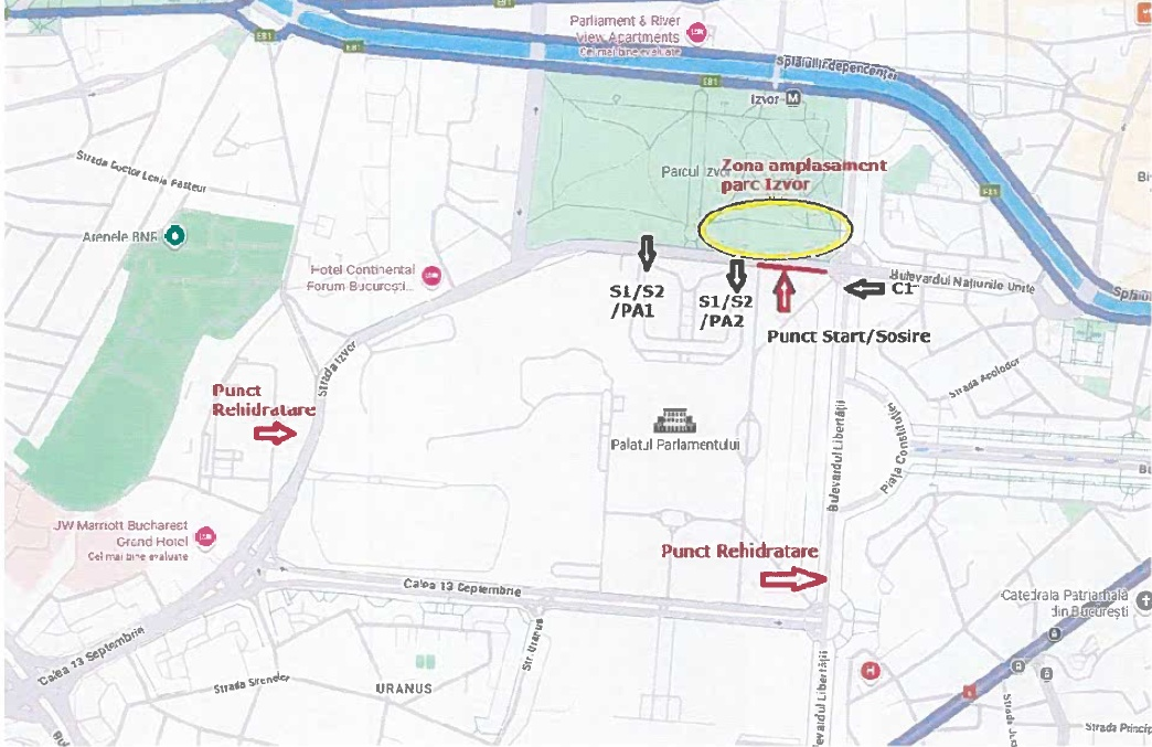 Traseul va fi amenajat în jurul Palatului Parlamentului (Parcul Izvor - Bd. Națiunilor Unite - Bd. Libertății - Calea 13 Septembrie - Str. Izvor), pe una dintre benzi, și se va alerga în sensul acelor de ceasornic. Vă rugăm să vă organizați sosirea ținând cont de restricțiile de circulație pe acest traseu și eventual alte restricții de circulație care vor fi aplicate în zonă pe durata evenimentului.